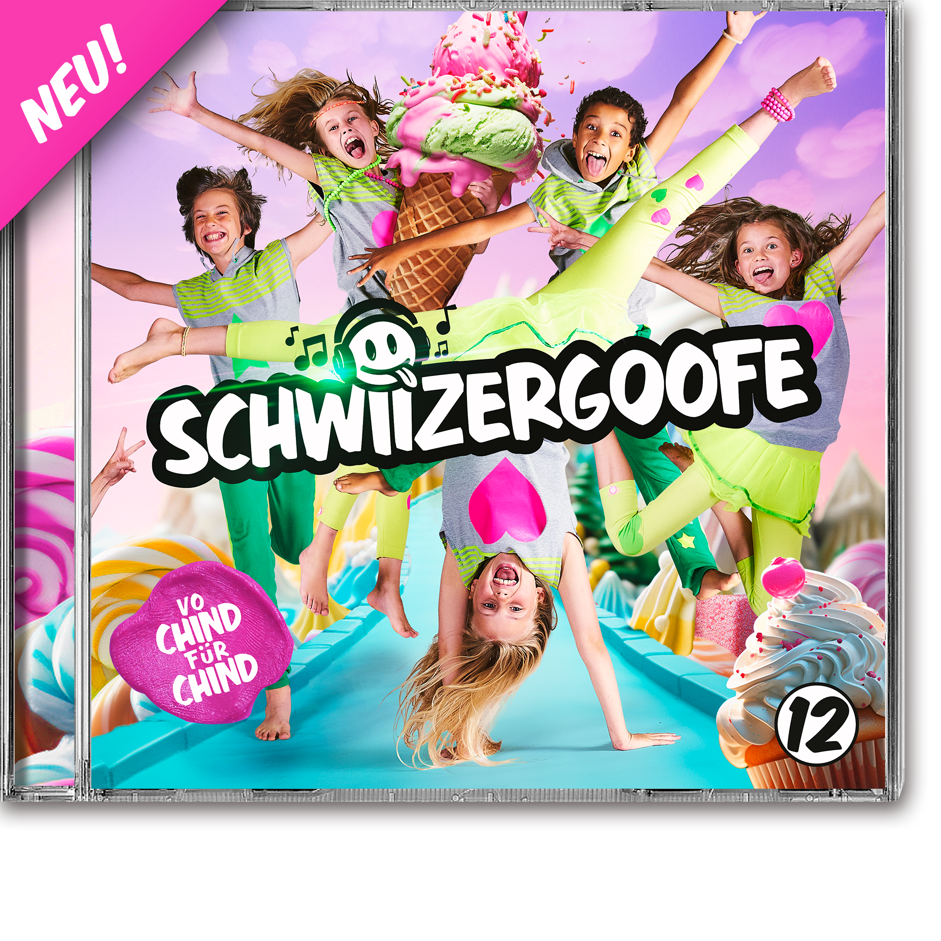 Die grösste Goofeparty aller Zeiten geht weiter! Auf CD «12» bringen wir Humor, Freude und ganz viel Gefühl ins Schwiizergoofe-Land: Mit groovigen Uptempo-Songs wie «Ready to go», «Füür und Flamme», «Turn around» u.v.m. steigt die grosse Schwiizergoofe-Party, wo auch immer ihr seid - während bei einem bei Balladen wie «Herzschlag» oder «Mer werde gross» ganz warm ums Herz wird und man ins Träumen gerät, versprochen.